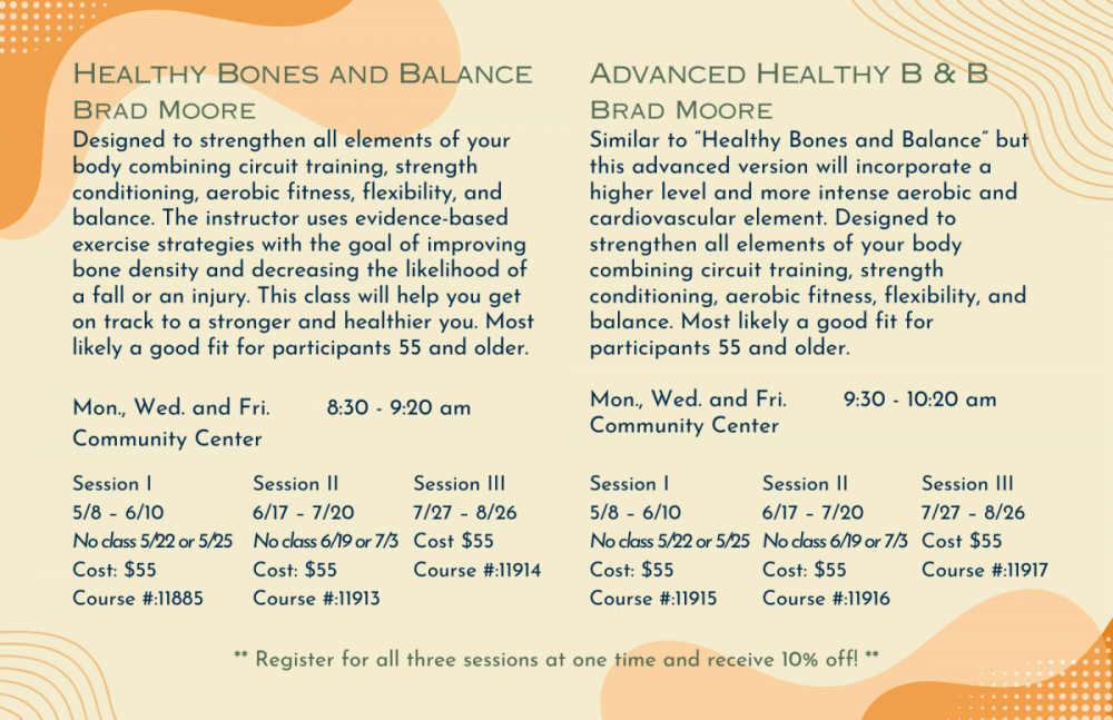 Designed to strengthen all elements of your body combining circuit training, strength conditioning, aerobic fitness, flexibility, and balance. The instructor uses evidence-based exercise strategies with the goal of improving bone density and decreasing the likelihood of a fall or an injury. This class will help you get on track to a stronger and healthier you. Most likely a good fit for participants 55 and older.